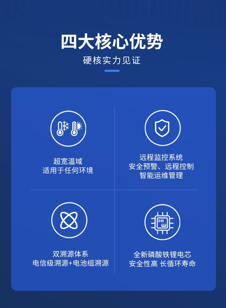 以中科院超宽温域技术为核心,采用全新磷酸铁锂电芯,实现极寒快速启动与高温长效运行,配备物联网远程监控与国标双溯源体系,安全合规、智能可控,全面满足低速车辆、园区车辆、特种代步等场景的稳定动力需求。